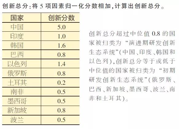 作者评估每个国家5个关键因素(因篇幅原因,本文未一一列举)计算“创新分数”:高影响因子科研文章数量、全球排名靠前的一流大学数量、专利数量、生物科学博士数和正在进行的临床研究数量(中国包括香港和台湾)。