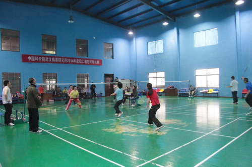 4月20日,武汉病毒所2014年度职工羽毛球对抗赛在所活动中心成功举行。本次羽毛球比赛由所党委、所工会主办,研究所40余位职工参加了比赛。本次比赛为团体赛,比赛项目包括男双、女双和混双。比赛采取两组对抗的形式进行,最终由何长才带领的A组在全组队员的共同努力下获胜。