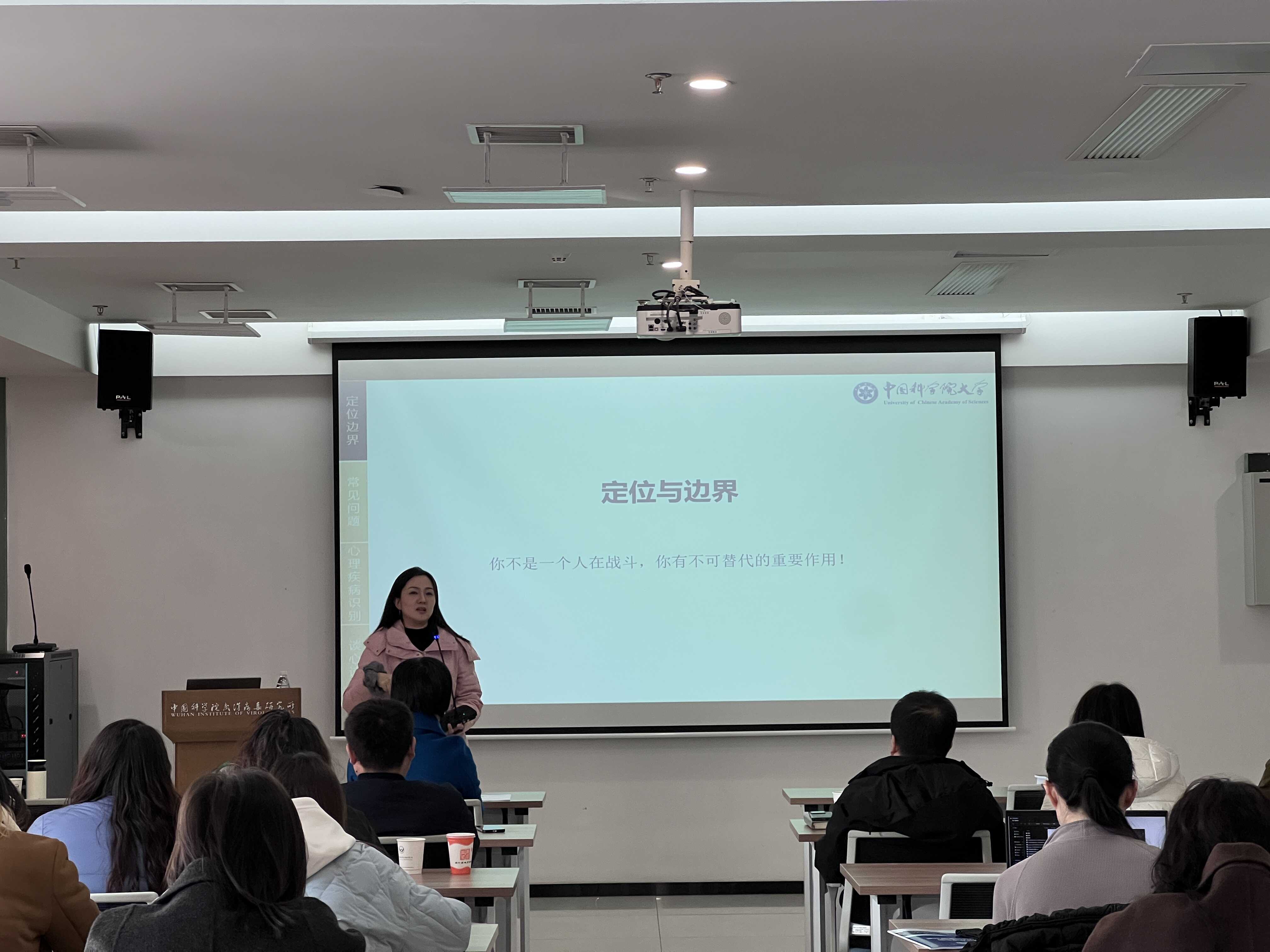 本次培训特别邀请中国科学院大学心理健康与教育中心教育主管秦蕾作专题授课。秦蕾以新时代学生心理健康工作目标为切入点,系统阐释了兼职辅导员在心理健康教育工作中的角色定位与职责边界,结合案例,深入解析学生常见心理问题的识别方法与应对策略,为参训人员构建起扎实的理论认知。下午的培训聚焦“兼职辅导员谈心谈话技巧”核心主题,秦蕾结合咨询实例,通过理论讲解与实务指导相结合的方式,有效强化了兼职辅导员在心理支持与危机干预中的实操能力。